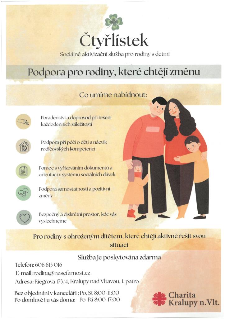 Charita Kralupy nad Vltavou - ČTYŘLÍSTEK - sociálně aktivizační služba pro rodiny s dětmi