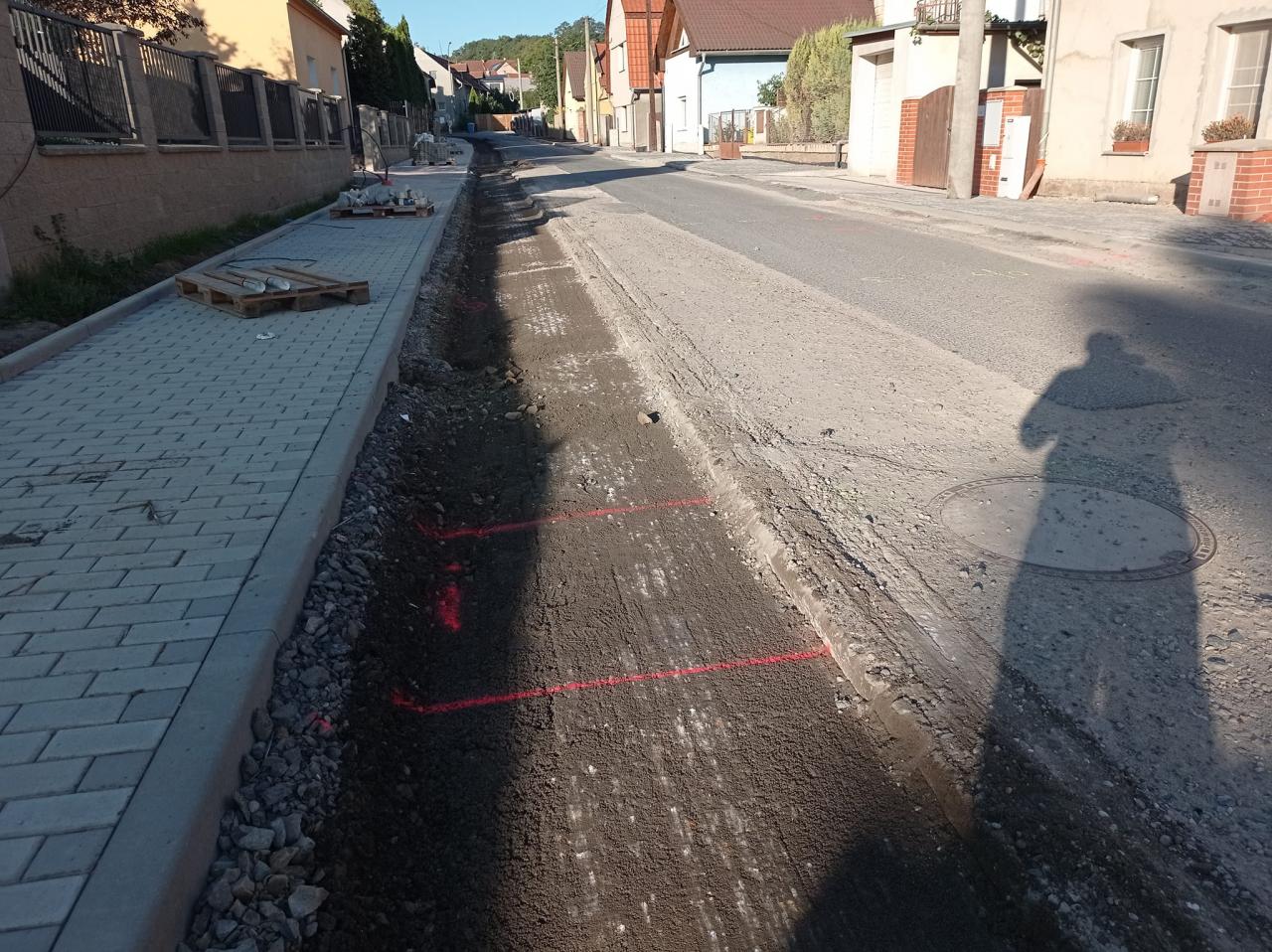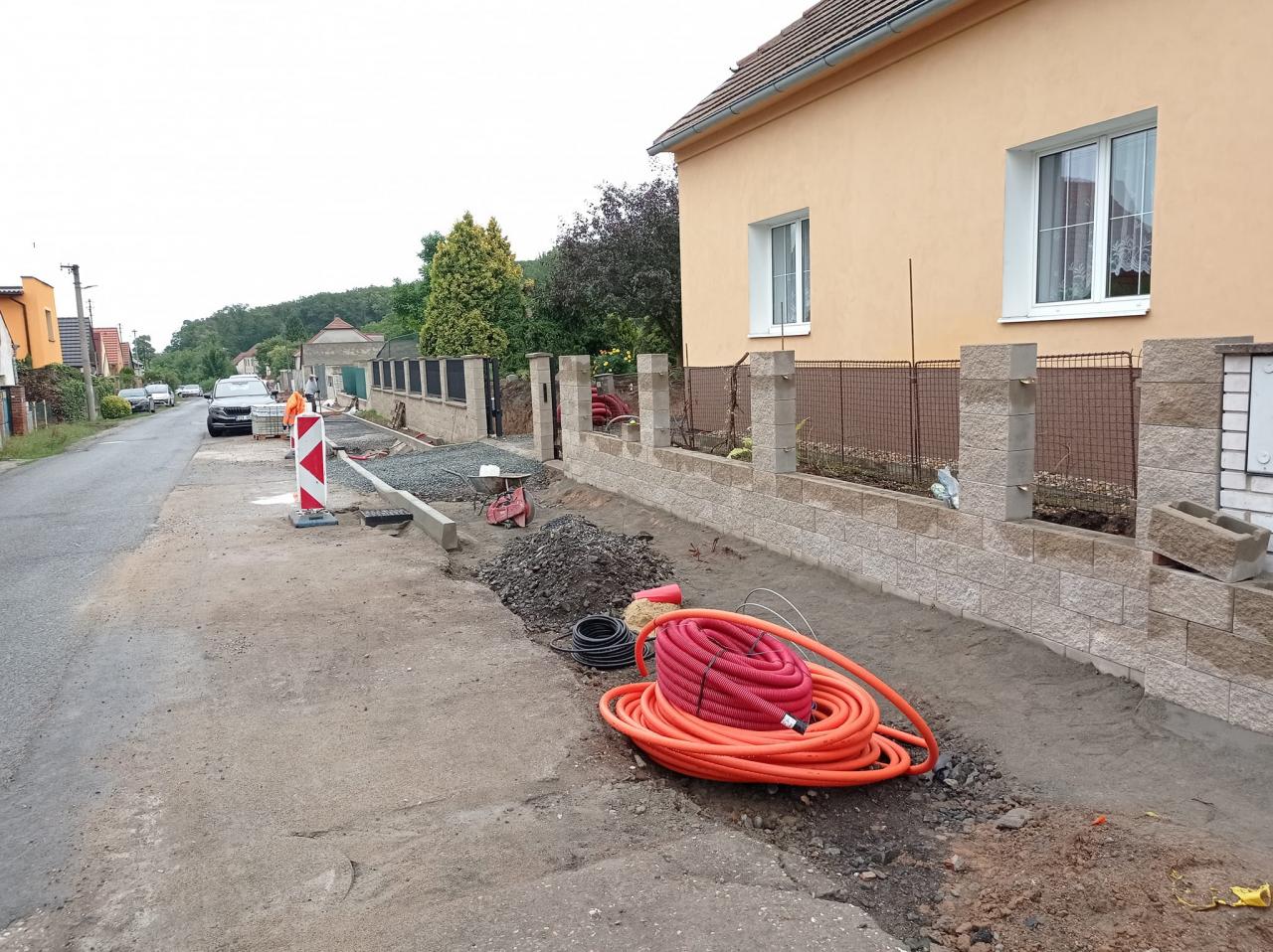 V ulici V Úvoze jsme se přesunuli na druhou stranu ulice, takže vše jde podle plánu. Tímto moc děkujeme stavení firmě Stavitelství Řehoř, s. r. o., že pracuje i o víkendech.